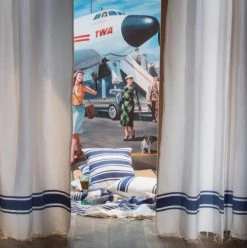 Fouta Futée Housses De Canapé Jeté De Canapé 100% Coton Blanc Rayures Bleu 200 X 300